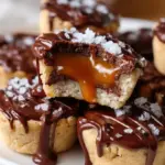 Delightful cookie cups filled with rich caramel and topped with melted chocolate, promising a perfect blend of crunch, gooeyness, and sweetness.
