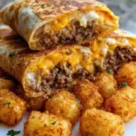 These cheesy potato burritos aren’t just a meal; they’re an experience, a culinary hug on a plate. With the combination of crispy tater tots, seasoned beef, and melted cheddar cheese, you get flavors that sing together in joyful harmony. They cater to those late-night cravings and make perfect comfort food after a long day. Plus, they delightfully adapt to any occasion, from casual family dinners to weekend brunches with friends. You can easily customize them to suit your taste, making each burrito uniquely yours. This dish draws you in not only with its delightful flavors but also with the warmth of shared moments around the table.