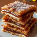 Churro Toffee Bars are a decadent dessert combining buttery toffee, crunchy saltine crackers, chocolate chips, and a sprinkle of cinnamon-sugar, evoking memories of cherished moments and joyful gatherings.