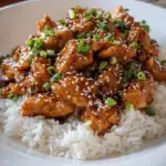 Serve and Garnish: Scoop the honey garlic chicken over rice or noodles, topping with sliced green onions and sesame seeds for that perfect finishing touch.