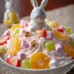Nestled in a colorful bowl, the bright hues of the fruit intertwine with fluffy white clouds of topping, adding a visual charm that’s as irresistible as the taste itself. The texture captivates—smooth, creamy, and incredibly refreshing—transforming ordinary moments into extraordinary memories. This Easter Bunny Fruit Fluff is not just a dessert; it’s a celebration on a plate.