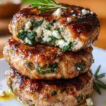 Savory turkey patties infused with Mediterranean herbs, spinach, and feta, offering a delicious and nutritious meal.