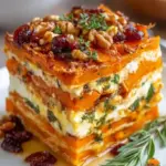 The aroma of freshly roasted vegetables fills the air, wrapping you in a warm embrace that beckons you to the kitchen. As you slice through the vibrant layers of sweet potatoes, butternut squash, and carrots, the rich colors come alive – deep orange, golden yellow, and sun-kissed hues dancing together in perfect harmony. Each layer promises a delightful experience, bursting with natural sweetness and wholesome goodness. This isn’t just any lasagna; it’s a vibrant testament to the beauty of seasonal produce, crafted with love and care, inviting you to savor every last bite.