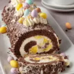 - Final Touches: Place your rolled sponge on a serving plate. Drizzle with melted chocolate and add whole and crushed mini eggs for decoration.