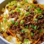 Mongolian ground beef cabbage dish served in a bowl