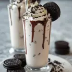 This creamy Oreo Milkshake combines rich vanilla ice cream with crunchy Oreo cookies, drizzled with chocolate syrup and topped with whipped cream for a nostalgic treat.