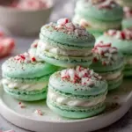 Delicate peppermint macarons with a creamy filling, perfect for festive celebrations or cozy gatherings.