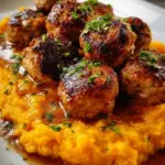 The first glimpse of this dish reveals a vibrant palette: the warm orange of the sweet potato complementing the golden-brown of the meatballs, glistening with sauce that catches the light. Your mouth waters at the thought of contrasting textures— the crispy edges of the meatballs giving way to their succulent centers, and the smoothness of the mash providing a perfect, buttery backdrop. Each bite encapsulates a symphony of flavors—flavors that dance and harmonize, making you reminisce about cozy dinners at home where laughter and warmth filled the air just as much as delicious food did.