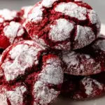Delicious Red Velvet Crinkle Cookies with a rich cocoa flavor and a stunning red hue, perfect for any occasion.