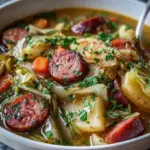 A comforting and hearty soup featuring smoky sausage, tender potatoes, and crisp cabbage, perfect for chilly evenings.