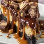 - Add Toppings: Sprinkle Snickers pieces and roasted nuts over the peanut butter layer. Drizzle caramel sauce generously on top to enhance the sweetness.