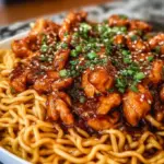 The delightfully rich flavor profile of this dish manages to captivate even the most discerning palate. It’s the balance of sweetness from honey and brown sugar against the umami of soy sauce, with a hint of spice from red pepper flakes that truly elevates the experience. Whether you’re enjoying it on a cozy weeknight at home or impressing friends at a gathering, Sticky Garlic Chicken Noodles brings the kind of joy that makes every meal memorable.