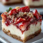 Indulge in these delightful Strawberry Cheesecake Bars filled with creamy filling and fresh strawberries, all on a buttery crust.