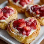 Delightful heart-shaped pastries filled with creamy cream cheese and fresh strawberries, perfect for a cozy brunch or romantic breakfast.