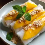 This recipe encapsulates everything you adore—exquisite taste, delectable textures, and a presentation that enchants the eye. Whether you’re indulging in a personal treat or impressing guests at a dinner party, these rolls stand out in both flavor and timeless appeal. The rich coconut sauce enhances the sweetness of the mango, making each roll a balanced harmony of flavors, while the sticky rice offers a comforting embrace that’s utterly satisfying.